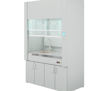 Вытяжной шкаф серии ПГЛ-ЛК выполнен по корпусной технологии из мебельных плит, облицованных пластиком HPL. Рабочая столешница устойчива к большинству химических реагентов, легка в обработке, не имеет стыков и швов.  Возможна установка раковины и кранов.