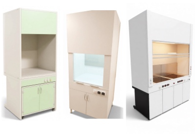 • химически стойкий пластик — в качестве столешниц, полок, дверей, фасадов и прочих составляющих.